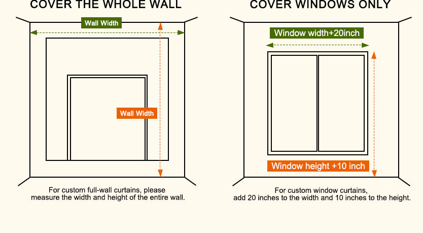 💡 Recommended curtain size: At least window width + 20''. We'll craft your curtains with 2-2.5x fullness for elegant folds—no extra fees or fabric calculations required.