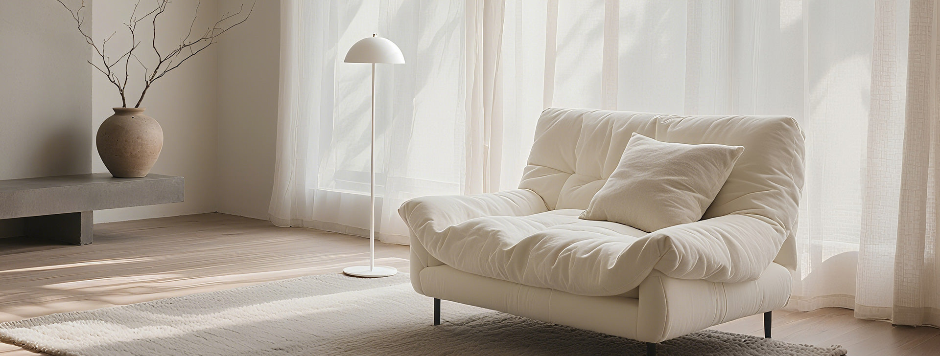 Curtains transforming a bright space into a cozy retreat.