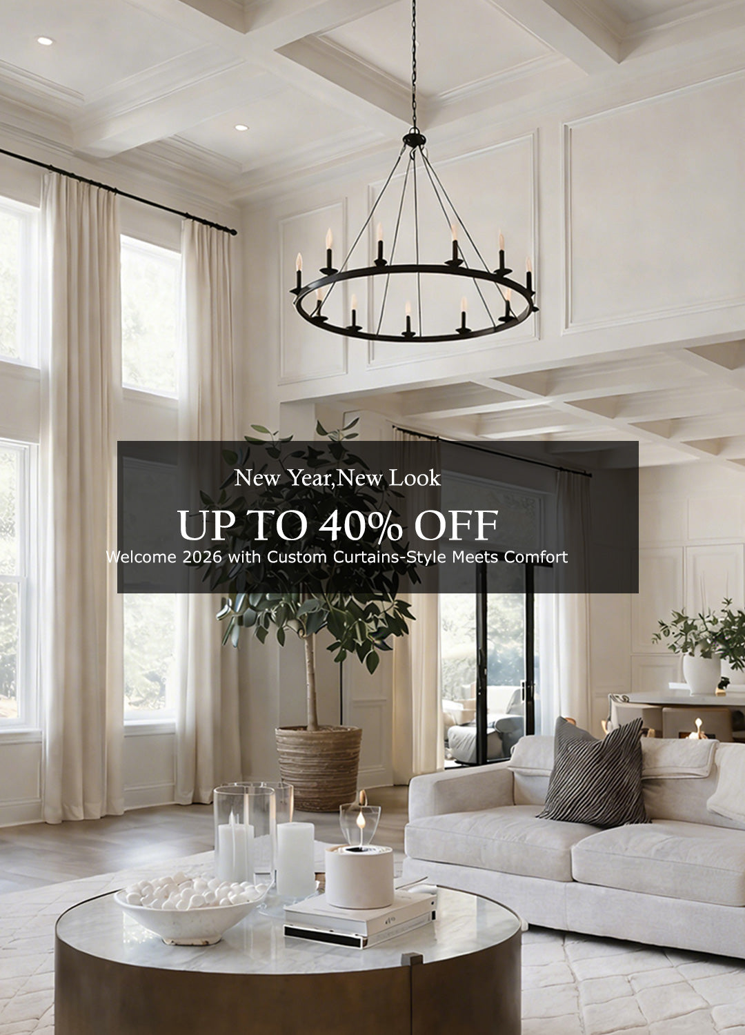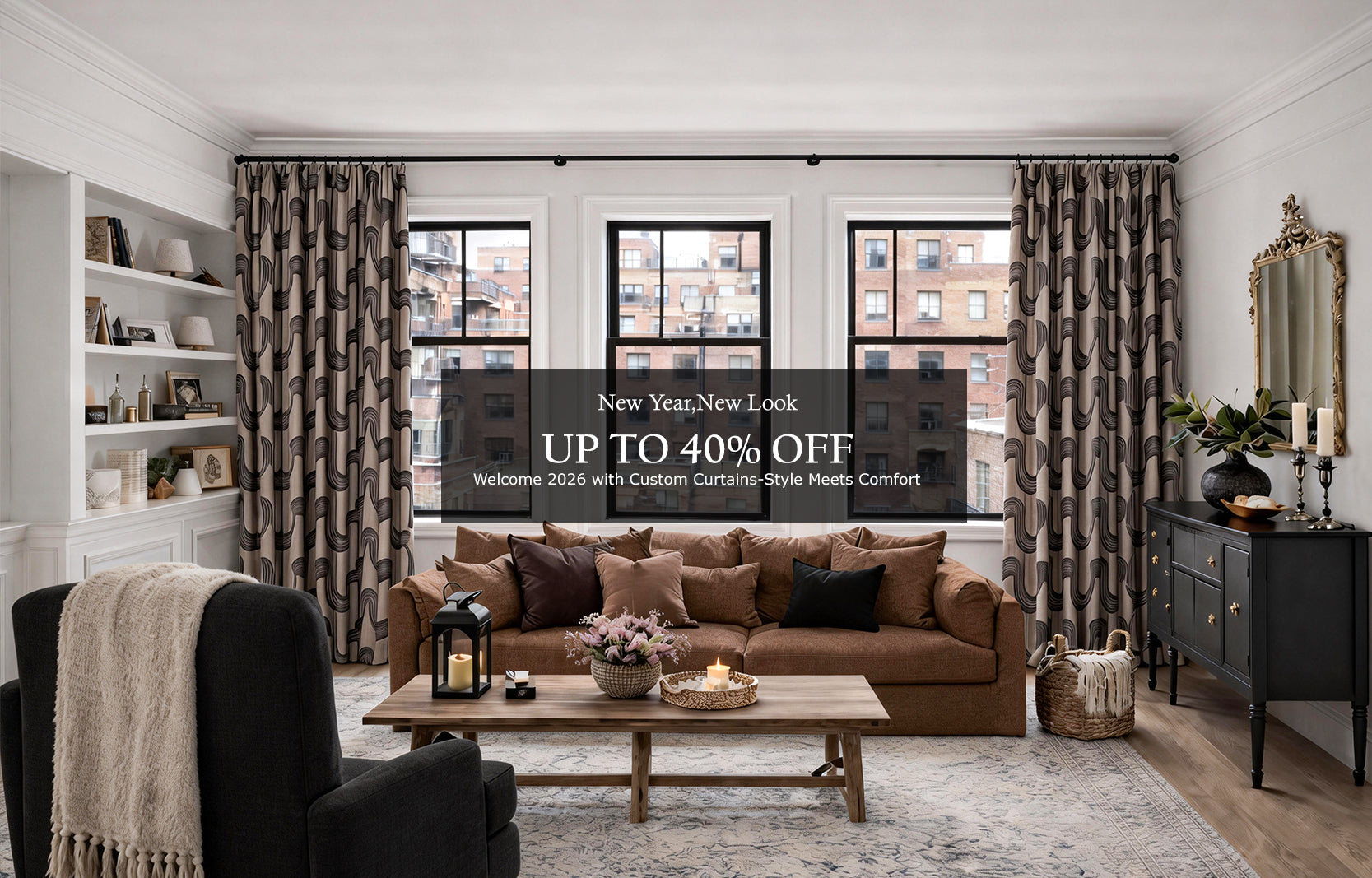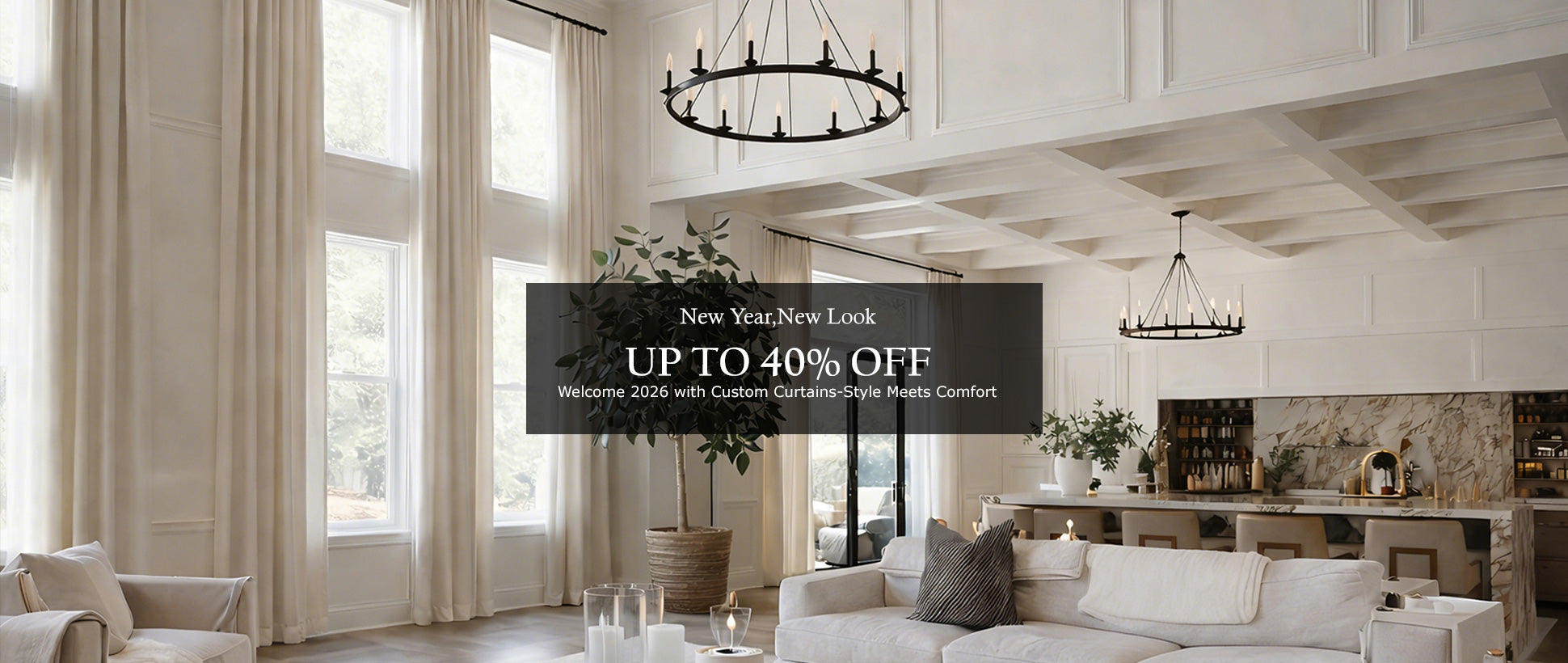 Bare windows = harsh light, faded furniture, a room that feels unfinished.