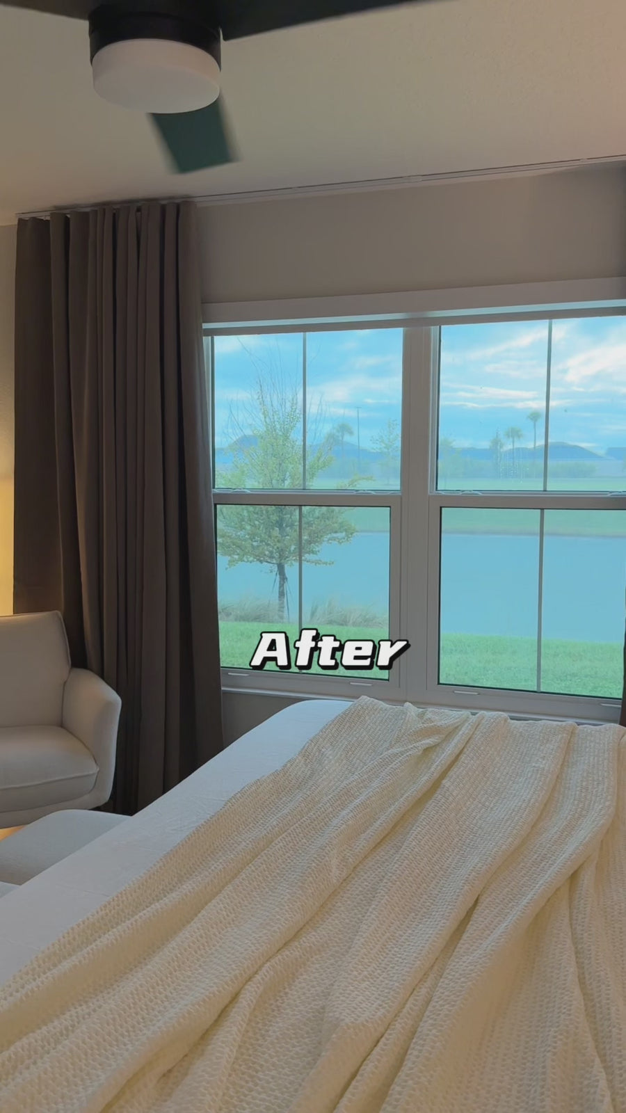 Before: Bare windows = harsh light, faded furniture, and a room that feels exposed and unfinished.