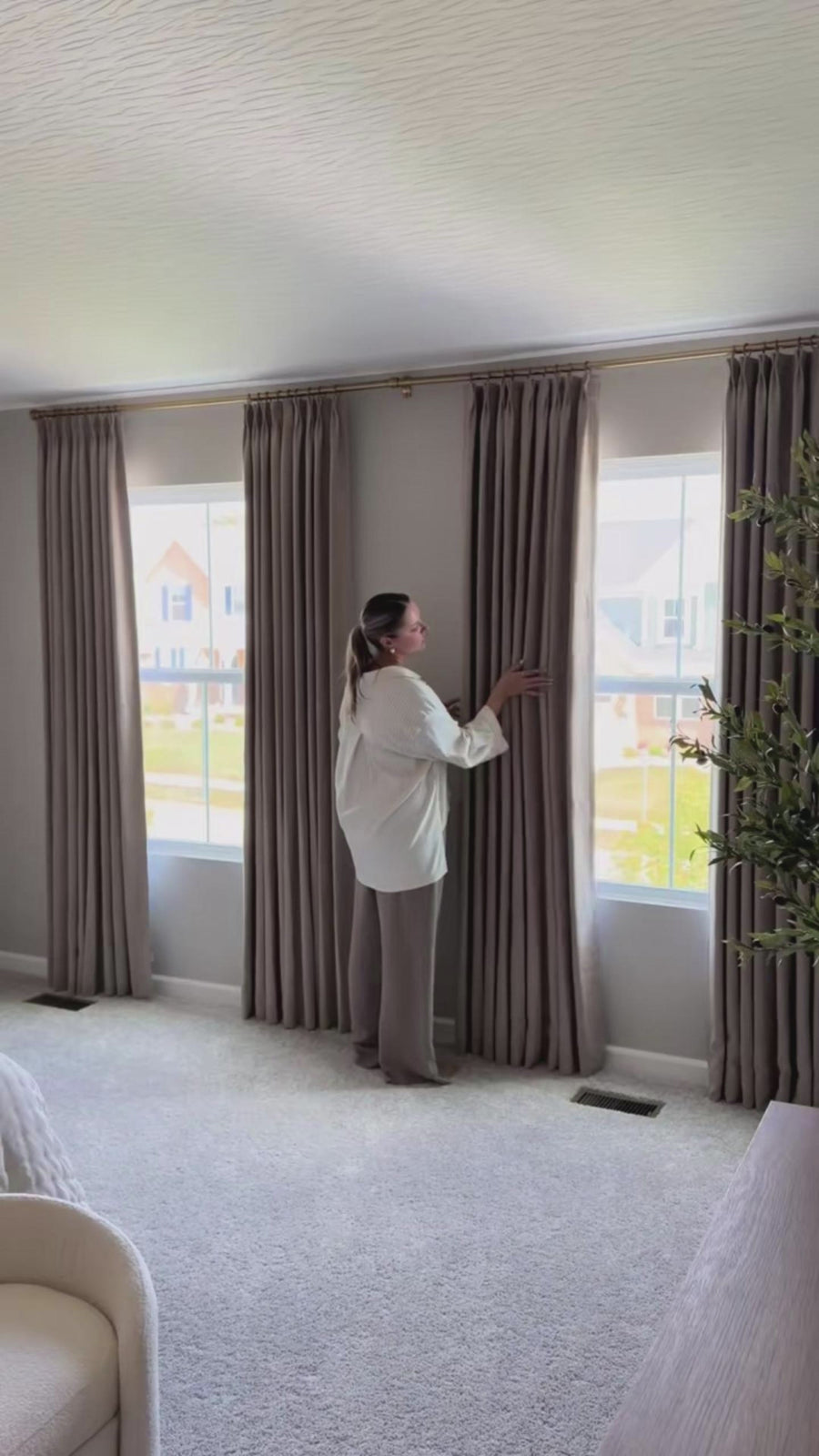 After: Our curtains add instant warmth, texture, and privacy, turning a bright space into a cozy retreat.