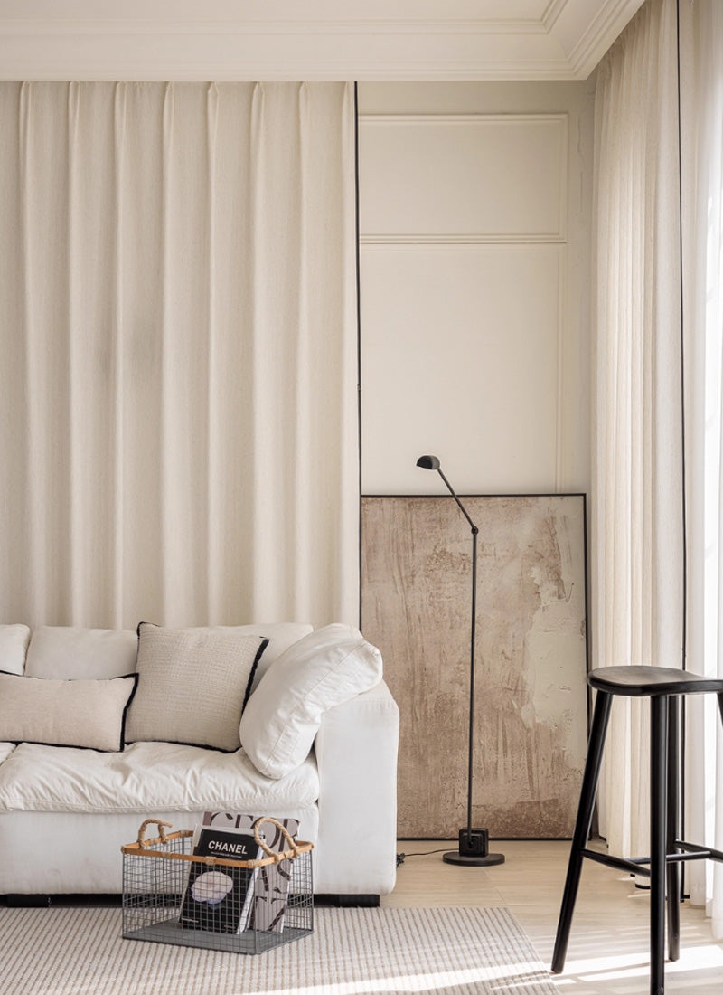 The “princess hem”—a layer of sheer sewn to the bottom of fabric curtains—started as a practical solution (fixing curtains that were too short for high ceilings) but quickly became a 2026 trend for its romantic vibe. It’s especially popular with younger homeowners and families, as it adds a playful touch without feeling childish. London-based designer Lulu Guinness recommends it for kids’ rooms or master bedrooms: “It’s like giving the curtain a ‘skirt’—it makes the room feel cozy and magical,” she told Elle Decor [9]. Use white 纱帘 for a classic look, or pastel (e.g., blush, lavender) for a fun twist.