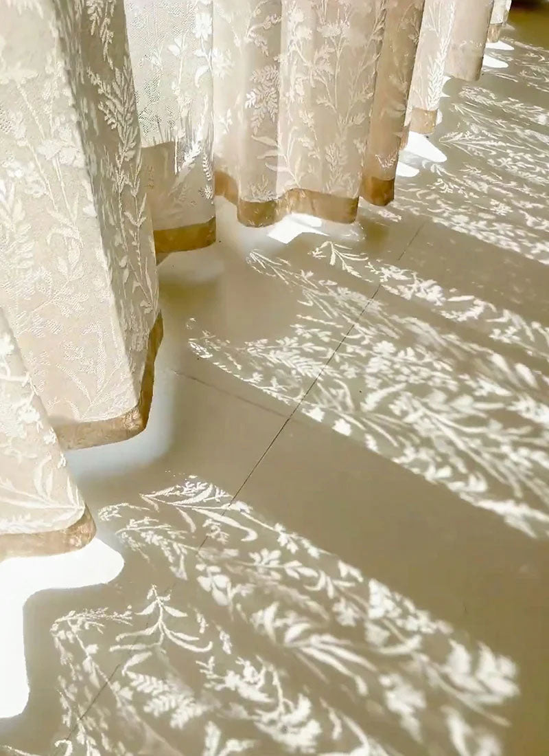 This is the romantic “white moonlight” of sheer fabrics, featuring a new butterfly rose design. Made with a polyester-cotton blend and a hollow jacquard technique, it looks beautiful in sunlight. The butterfly rose reflects shimmering light, creating a dreamlike atmosphere that captivates at first sight.