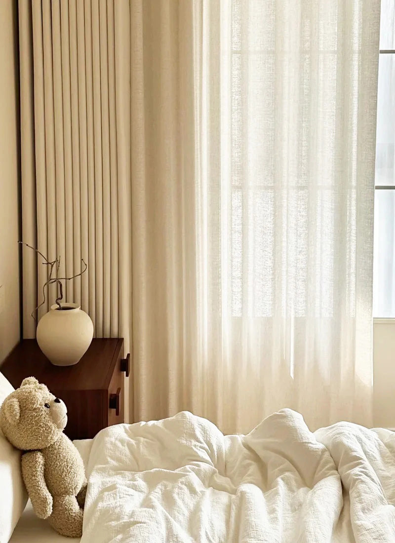 Our product line includes a range of light-blocking levels, from sheer voile curtains (approximately 20% light transmission) to fully blackout curtains (85–100% light transmission), allowing customers to select the option that best suits their room's requirements. Most curtains can also accommodate a lining, providing an additional layer of customization and protection.