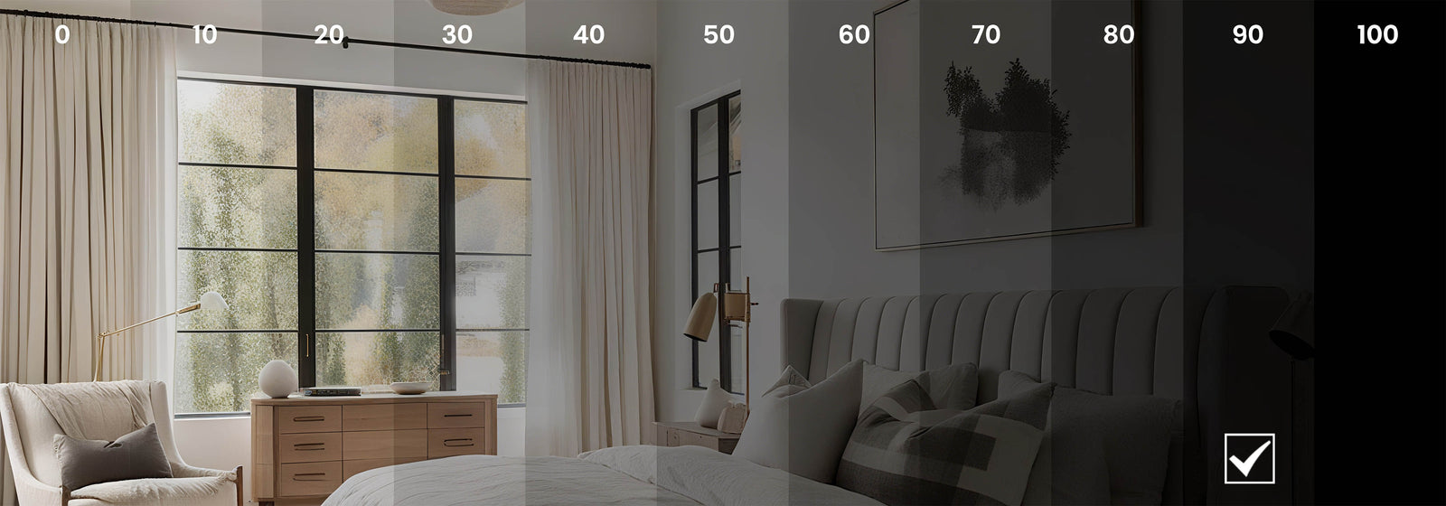 Our product line includes a range of light-blocking levels, from sheer voile curtains (approximately 20% light transmission) to fully blackout curtains (85–100% light transmission), allowing customers to select the option that best suits their room's requirements. Most curtains can also accommodate a lining, providing an additional layer of customization and protection.