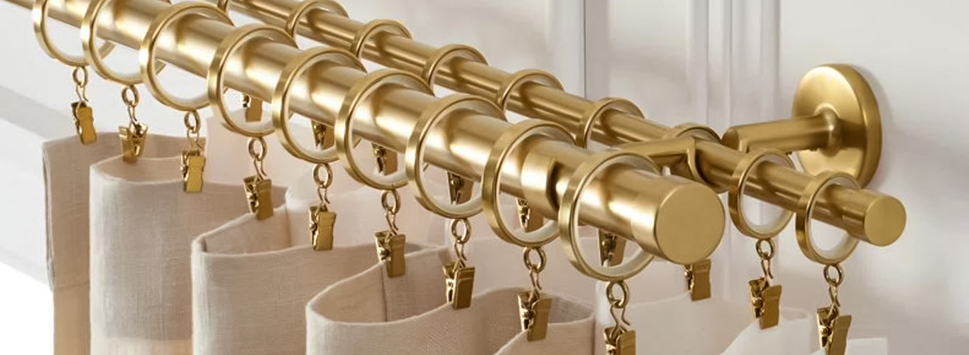 Luxury Modern Drapery Hardware System with Rings and Clips – a sophisticated and functional ensemble for elegant home decor.