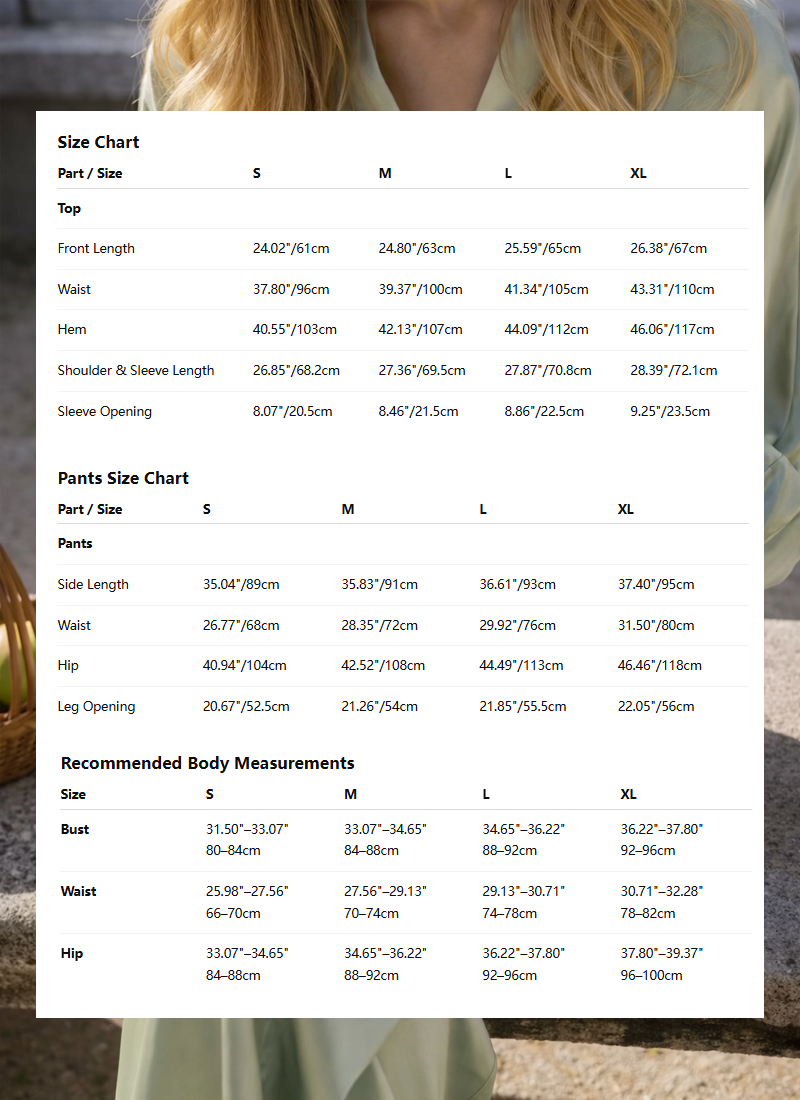 Our pajamas follow standard US/EU sizes. If you have a normal body type and prefer a regular fit, your usual size will fit perfectly. If you prefer a loose, comfortable fit, are between sizes, or are pregnant, we suggest choosing one size up for the best wearing experience.