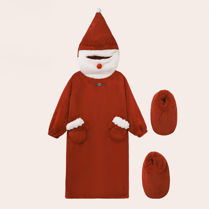 Cozy Wearable Hoodie Blanket Warm Christmas Coral Fleece Sleepwear