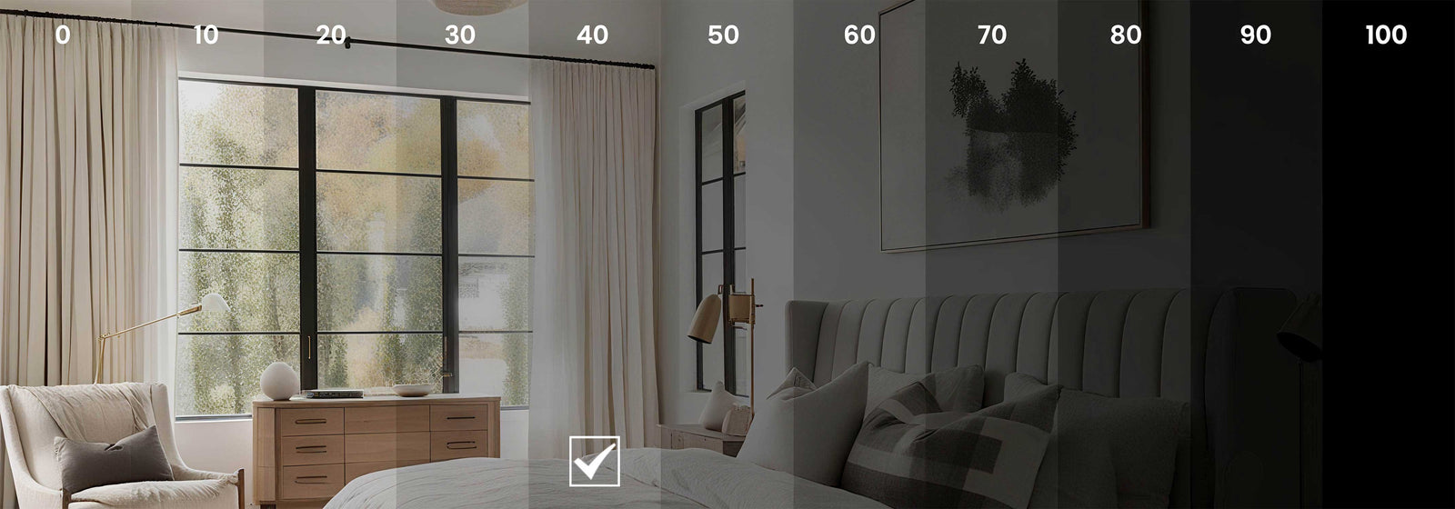 Our product line includes a range of light-blocking levels, from sheer voile curtains (approximately 20% light transmission) to fully blackout curtains (85–100% light transmission), allowing customers to select the option that best suits their room's requirements. Most curtains can also accommodate a lining, providing an additional layer of customization and protection.