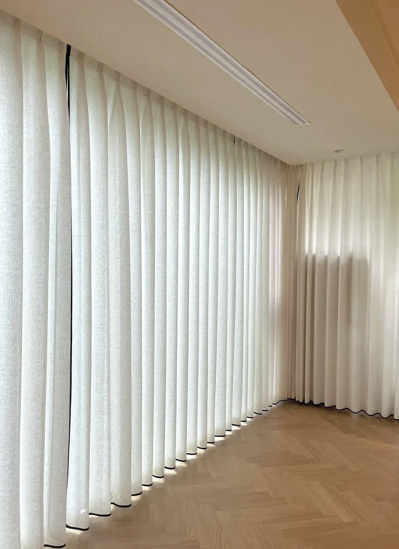 Our product line includes a range of light-blocking levels, from sheer voile curtains (approximately 20% light transmission) to fully blackout curtains (85–100% light transmission), allowing customers to select the option that best suits their room's requirements. Most curtains can also accommodate a lining, providing an additional layer of customization and protection.