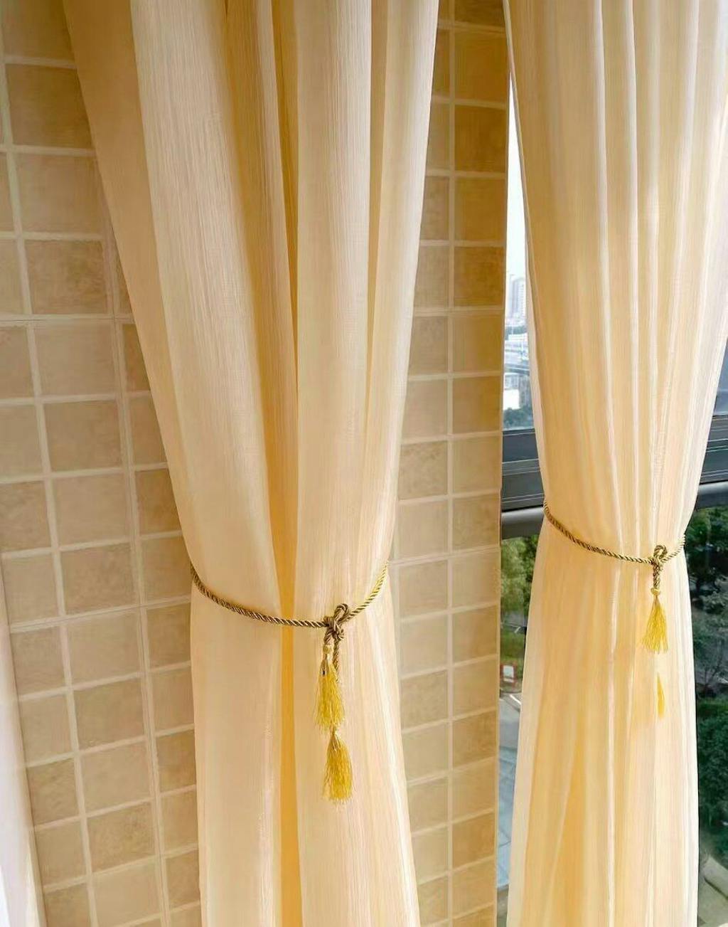 Love these flowing yarn semi sheer curtains! The fabric drapes so beautifully, super soft and airy. Filters sunlight perfectly—bright but not harsh, and gives just the right privacy at night. No cheap thin material here, looks luxe for the price. So happy with how they elevate my living room! ✨